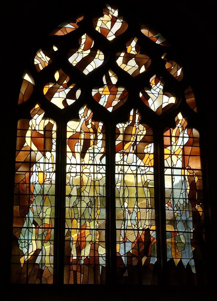 Les vitraux modernes, installés de 1975 à 1977, sont l'œuvre de Claude Baillon, vitrailliste de Millau.