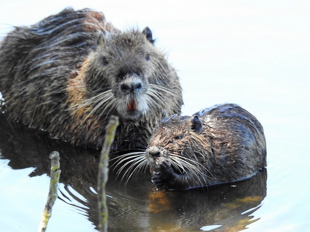 Hier, je vous ai montré deux jeunes ragondins jouant ensemble, sur les anciens étangs à poissons, près de chez moi.